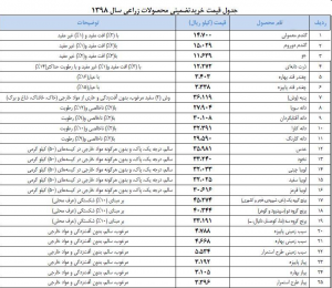 براین اساس، قیمت خرید تضمینی ۲۵ محصول کشاورزی از سوی شورای اقتصاد به شرح جدول است:
